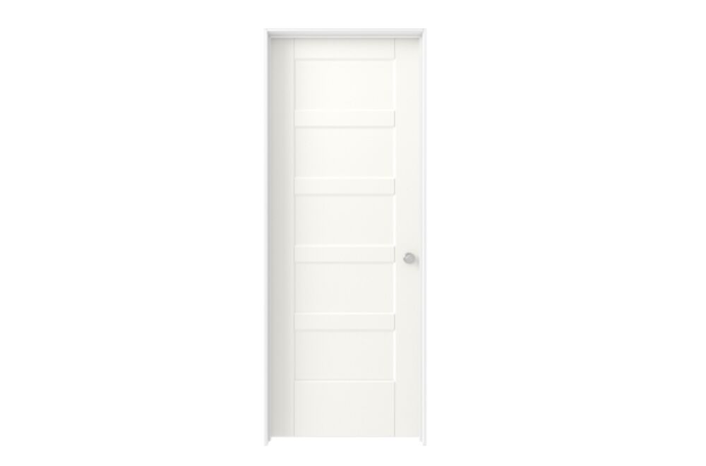 The Bayshore 5 Panel door versatile design matches any home style, while it is most compatible with craftsman and transitional styles. Combines the classic lines of a wood door with the durability of molded panel engineering. The smooth, primed surface is perfect for painting to match or accent your interior. Resists warping, shrinking and cracking.