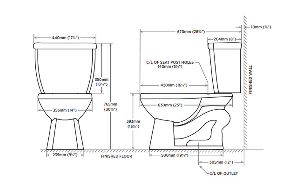 - 17¼" W x 26⅜" D x 30⅛" H (tank & bowl)