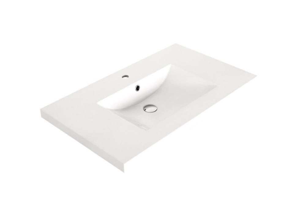 - white synthetic marble counter with moulded sink includes overflow