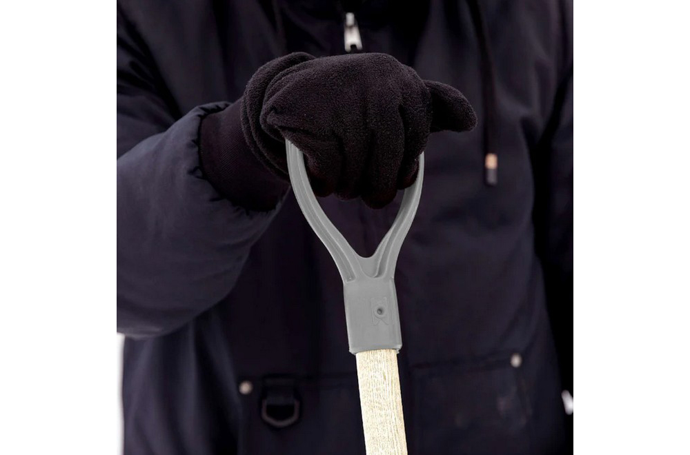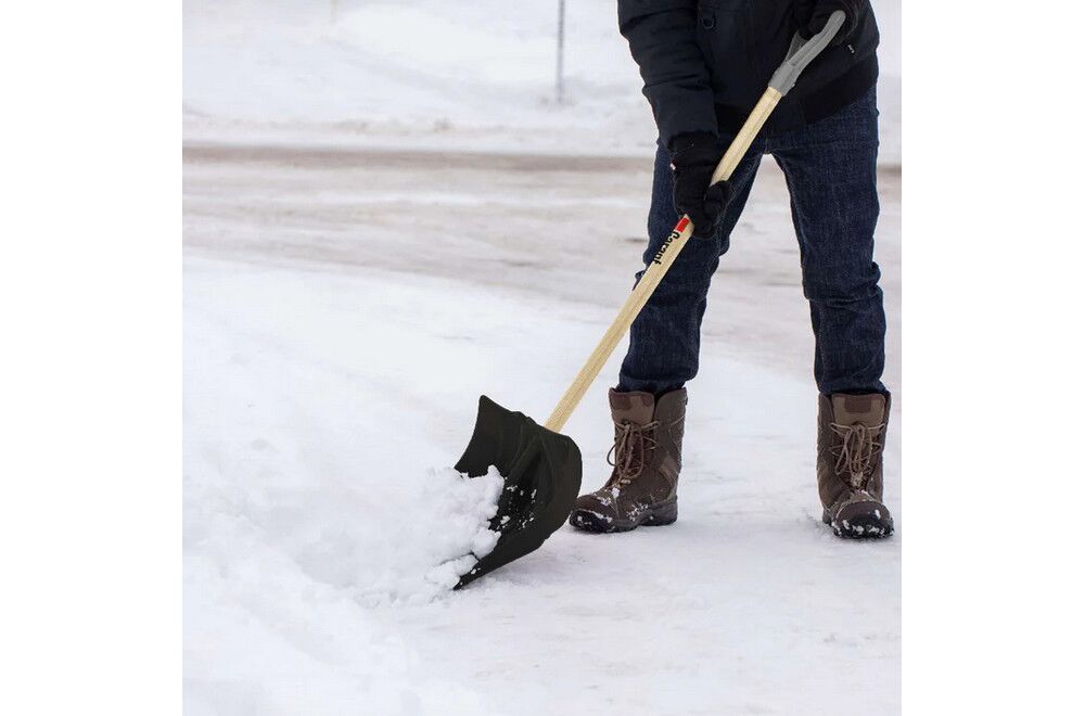 - Deep and wide shovel blade clears snow easily