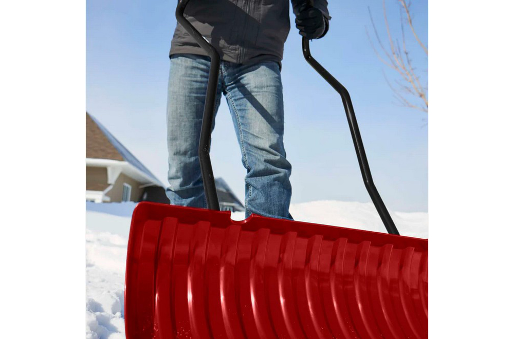 - Ergonomic steel handle allows the body to keep a natural position when pushing snow