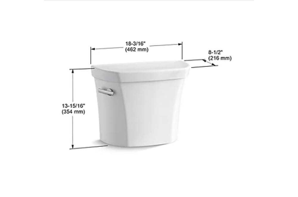 This Wellworth high-efficiency toilet tank reduces water consumption without compromising on flushing power. The 4.8L flush provides significant water savings of up to 62,400 litres per year compared to a 13L toilet, making this tank an economical addition to your house. Pair this Wellworth tank with a coordinated bowl for a customized ensemble (try the Wellworth elongated bowl K4198-0, Wellworth round bowl K4197-0, or comfort height Highline bowl K4199-0.