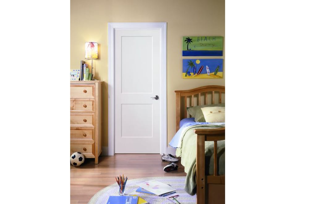 Combines the classic lines of a wood door with the durability of molded panel engineering. The smooth, primed surface is perfect for painting to match or accent your interior. Resists warping, shrinking and cracking. Available by special order.