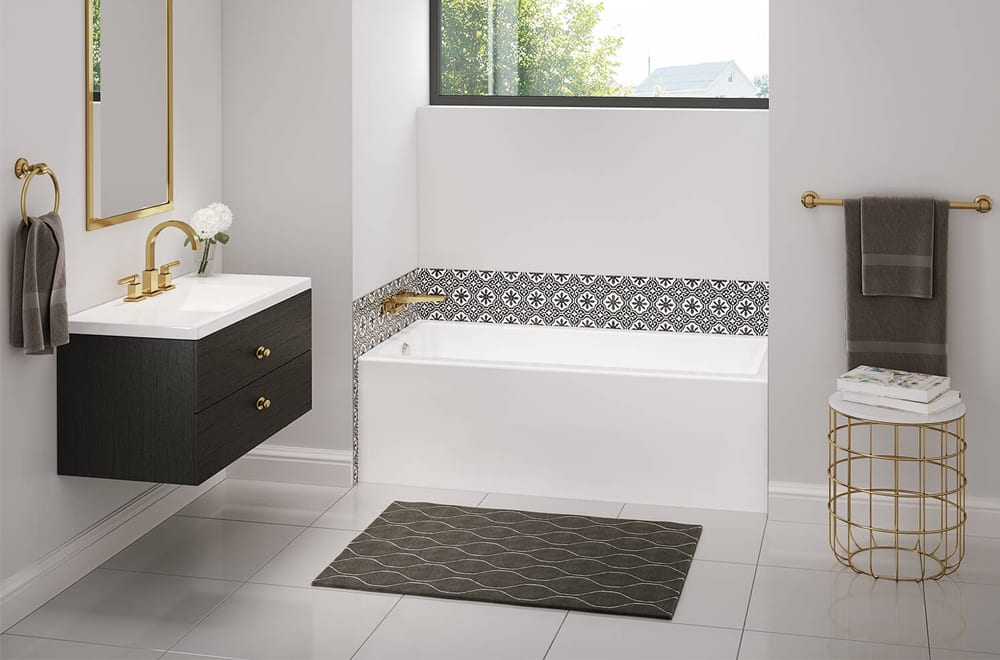 - Rectangular shape bathtub in alcove installation
