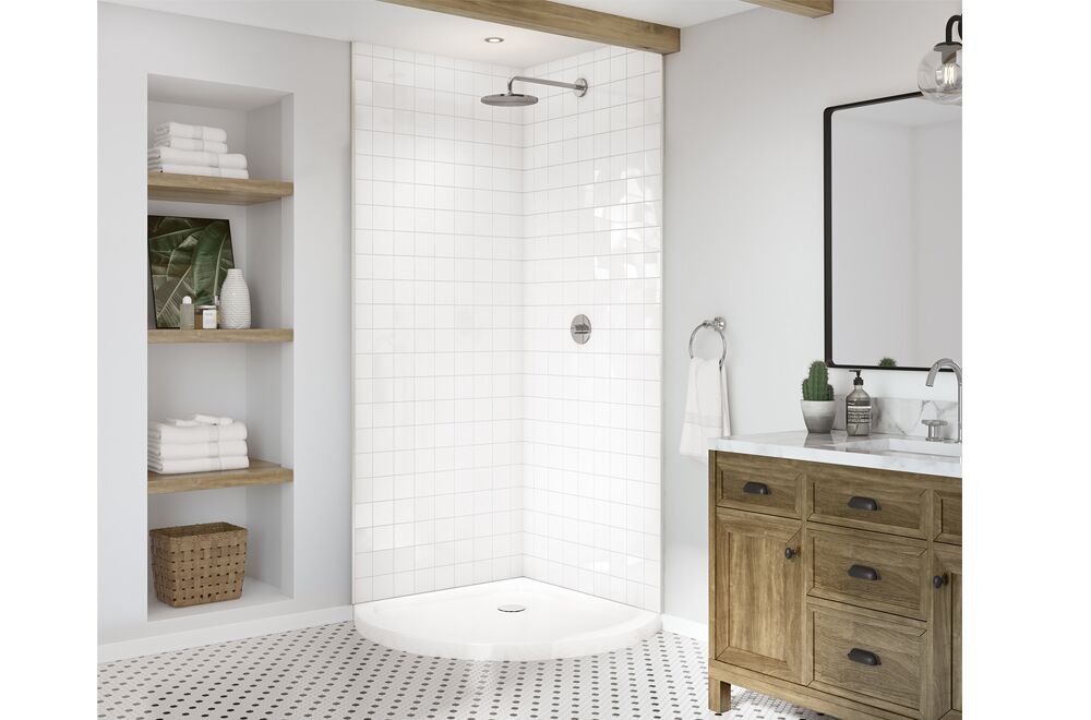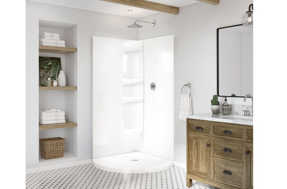 40-3/8″x40-3/8″x3″ Round acrylic base with corner drain. Compatible with Outback Shower Door & Wall Kit (sold separately).