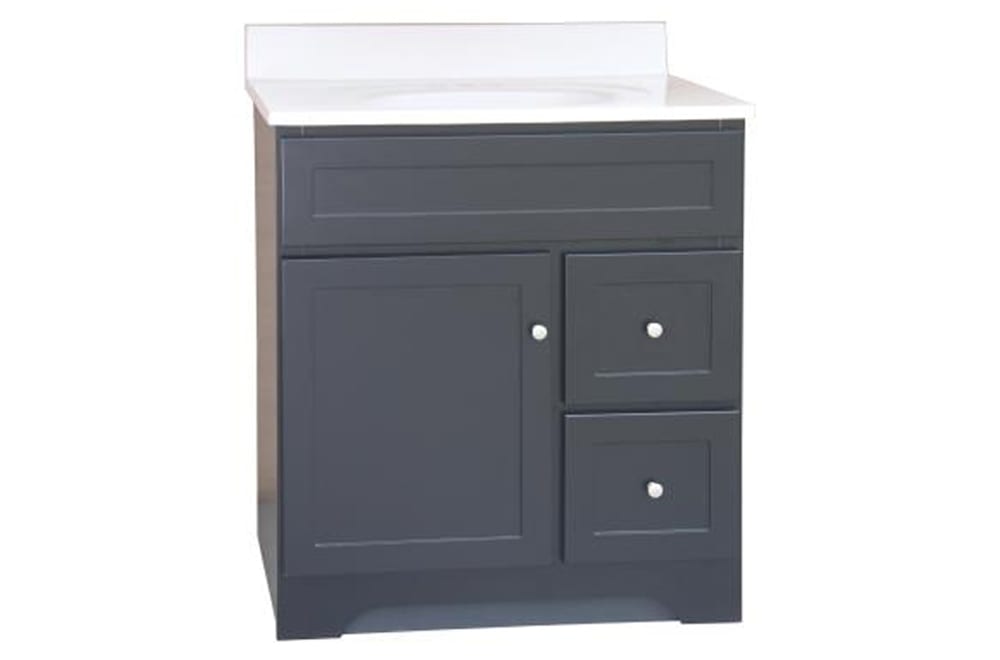 30″ Vanity with cultured white color marble top.