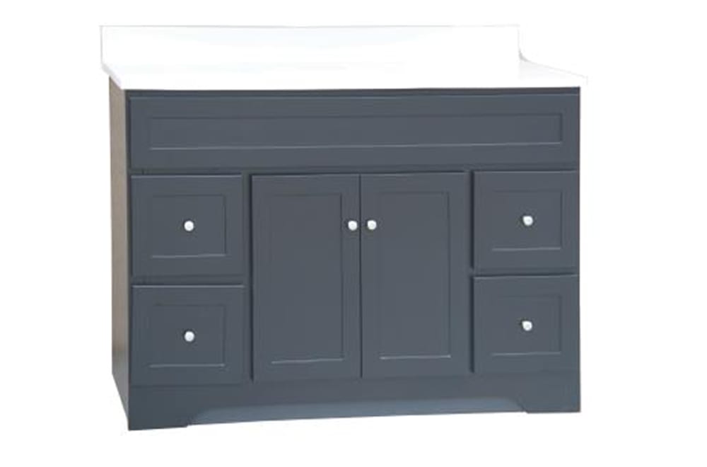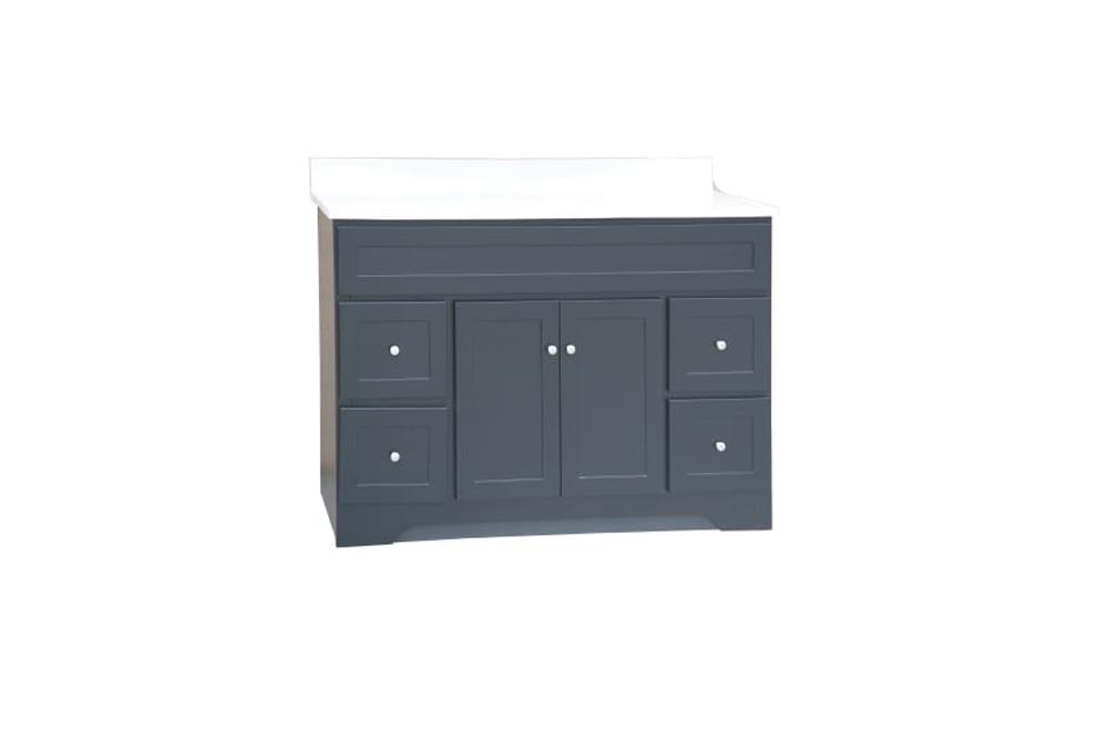 - 48" Vanity with cultured white color marble top and 3 faucet holes.