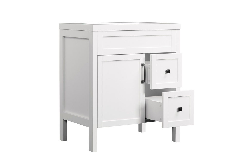 - Free-standing MDF vanity with 1 Shaker-style door and 2 Shaker-style drawers