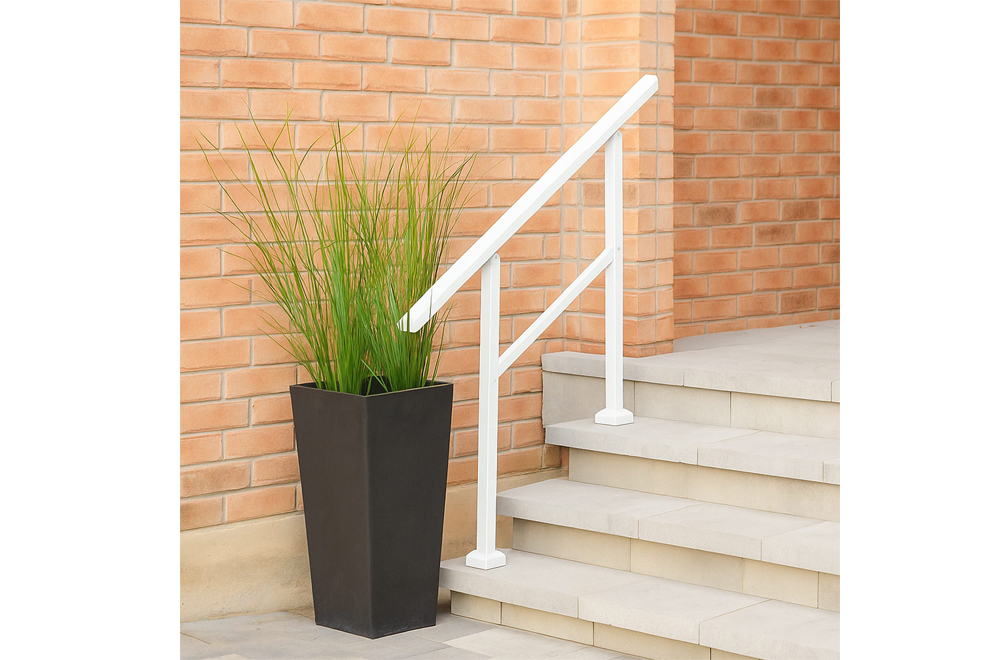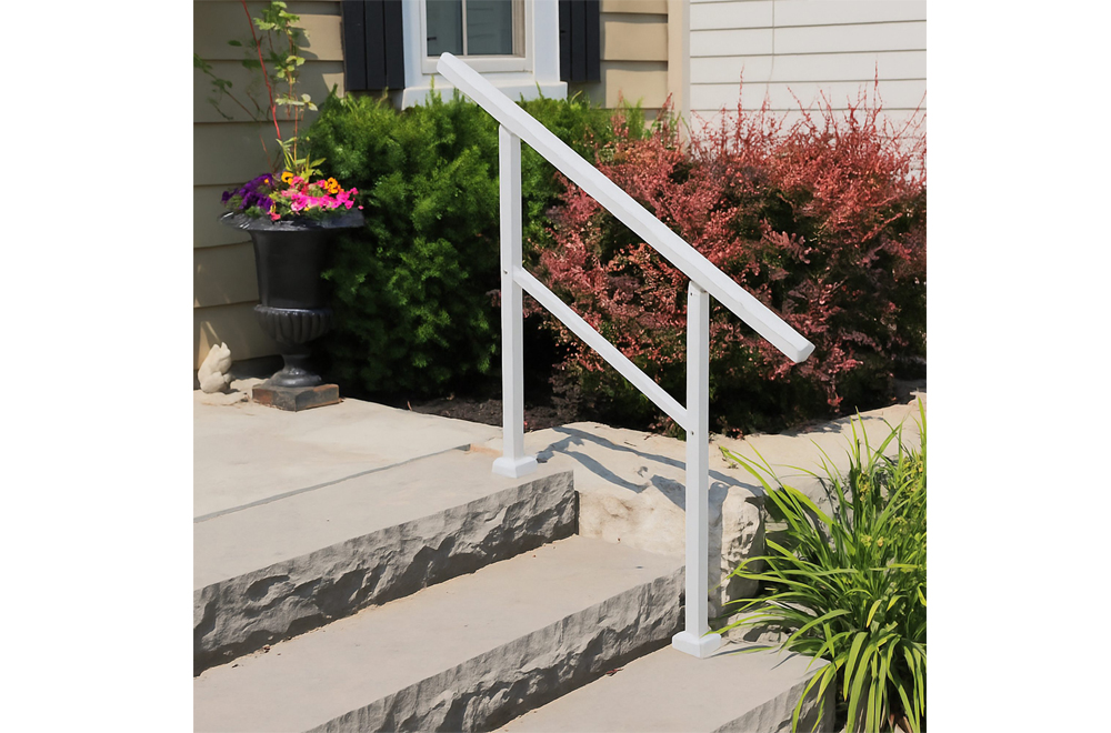 - Easily install this handrail kit by attaching it to the stair or ground surface with included anchors
