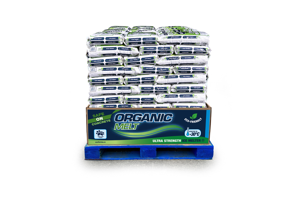 Organic Melt is the safest, most effective ice melter for concrete, asphalt, pavers, stones, lawns, gardens, and pets when used as directed. This ULTRA STRENGTH ice melter is effective down to extreme cold temperatures and eco-friendly. Organic Melt is enhanced with Fusion, a patented organic and biodegradable deicing liquid derived from degraded sugar-beets, for maximum melting power. Finer granules of salt are used in order to speed up the melting process and to reduce the amount of material that can be tracked inside buildings. Organic Melt is less harmful to the environment than conventional ice melters. More ice is melted with less material plus Organic Melt stays active for a longer period of time, thereby reducing the frequency of re-applications which also translates into less damage to all surfaces and vehicles.