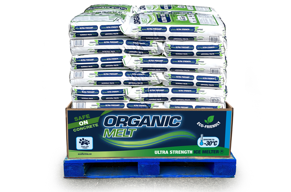Organic Melt is the safest, most effective ice melter for concrete, asphalt, pavers, stones, lawns, gardens, and pets when used as directed. This ULTRA STRENGTH ice melter is effective down to extreme cold temperatures and eco-friendly. Organic Melt is enhanced with Fusion, a patented organic and biodegradable deicing liquid derived from degraded sugar-beets, for maximum melting power. Finer granules of salt are used in order to speed up the melting process and to reduce the amount of material that can be tracked inside buildings. Organic Melt is less harmful to the environment than conventional ice melters. More ice is melted with less material plus Organic Melt stays active for a longer period of time, thereby reducing the frequency of re-applications which also translates into less damage to all surfaces and vehicles.