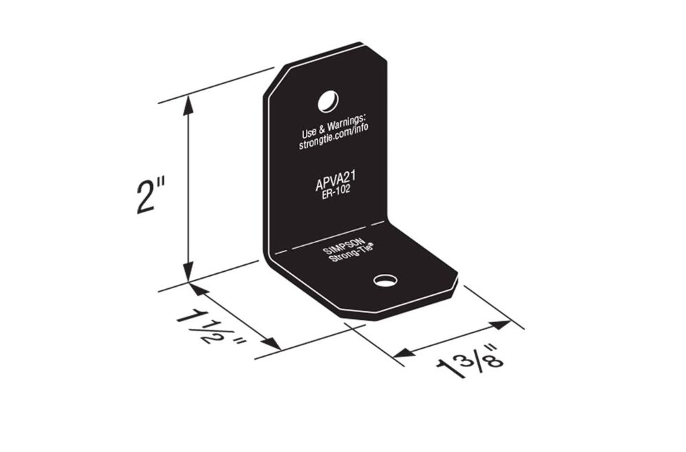 Outdoor Accents angles tie together beams, rafters and more. The APVA angle makes structural connections between beams and posts more visually appealing. These 90° angles make connections stronger and provide consistent, straight corners for a variety of outdoor projects. Part of the Avant Collection.