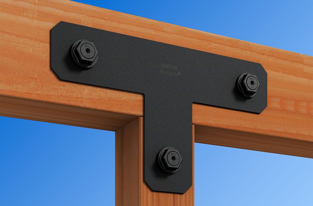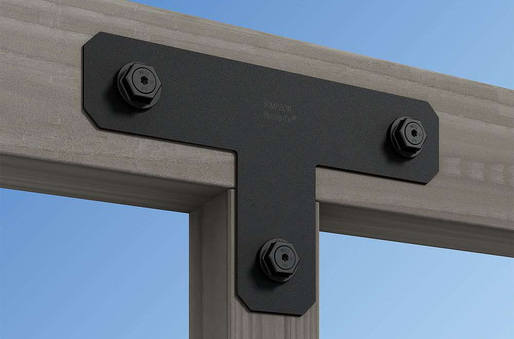 Outdoor Accents flat T straps from Simpson Strong-Tie bring decorative appeal and lateral strength to any outdoor living space. They provide reinforcement for a connection where one lumber piece intersects another at a 90° angle. This T strap is easily installed with Outdoor Accents structural screws and hex-head washers. Part of the Avant Collection.