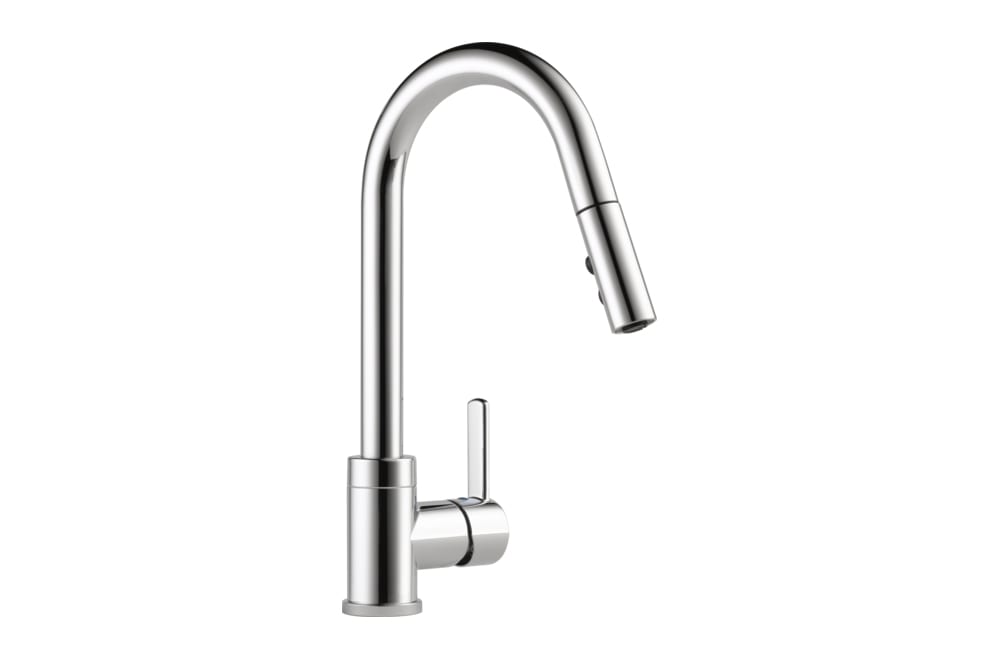 This sleek gooseneck kitchen fauce, by Peerless, was designed with both form and function in mind. The high-arc, gooseneck design swivels 360 degrees with a 20″ retractable hose for added convenience during everyday kitchen tasks.