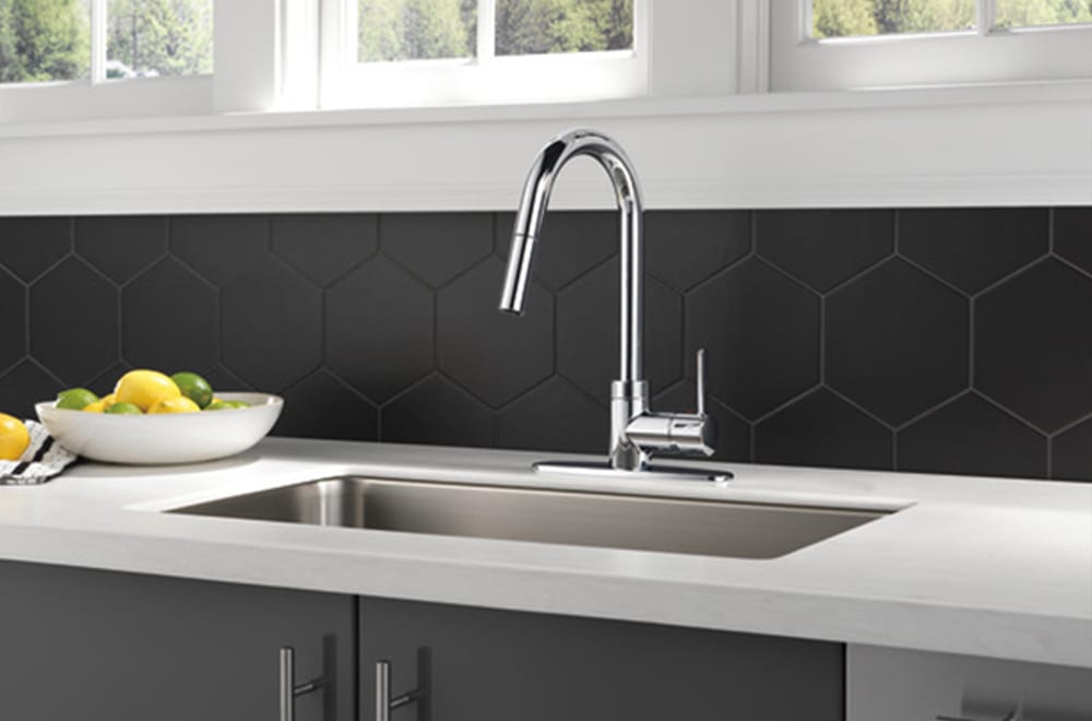- Single-handle pull down kitchen faucet