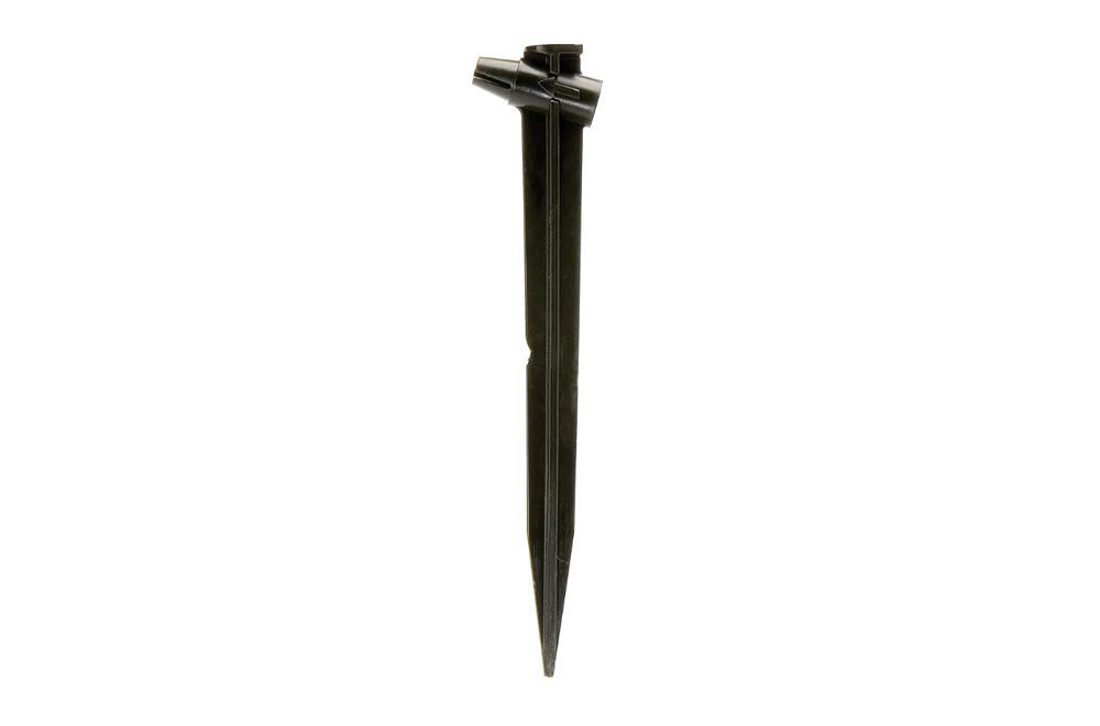 - Rigid stake featuring a flat enlarged head designed to withstand hammering into tough soil