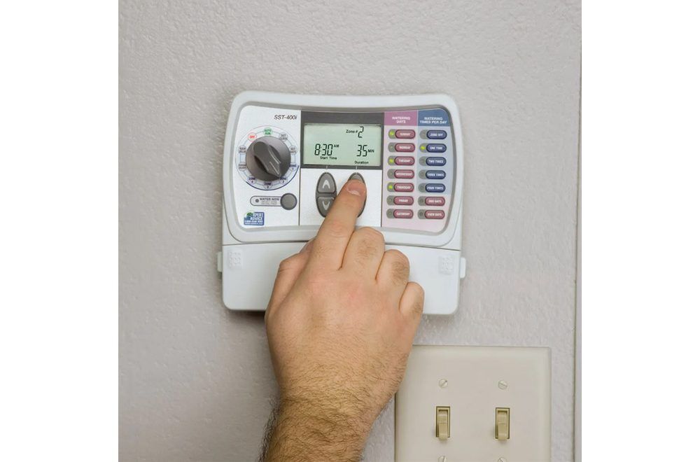This indoor-mounted timer is so easy to use you can forget the instructions. Its intuitive zone-by-zone scheduling allows you to set watering times differently for each area of the yard, providing greener results with less water. By turning the dial to each zone, you can easily set custom days of the week, odd or even days, or a cycle number of days independent of all other zones. You can also set up to four different custom watering times of the day to water slopes and clay soils in short intervals to allow water to soak in and avoid runoff. Each zone’s settings can be reviewed quickly with easy to read LED indicator lights.