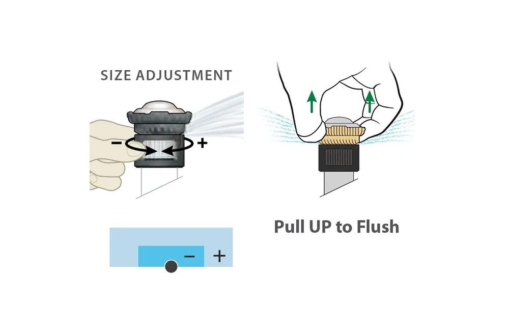 - Pull up flush feature clears the nozzle of dirt and debris