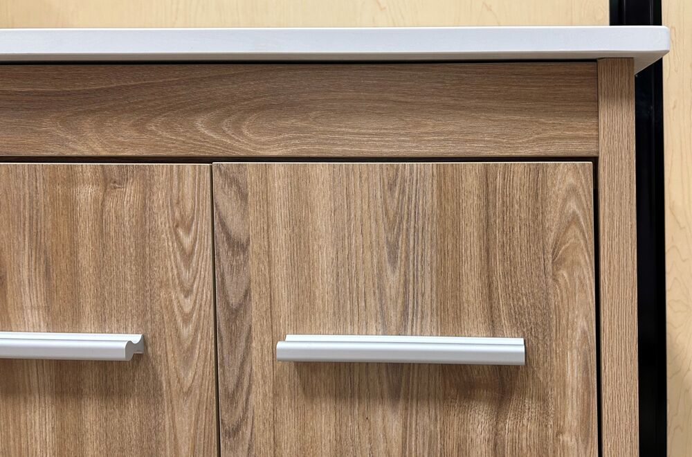 - Oak Melanine cabinet with 2 doors and 2 drawers