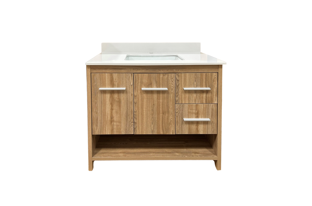- High-Quality Countertop: Made from non-porous white engineered stone with square edges / a pre-drilled faucet hole / and an optional backsplash for a sleek and functional design