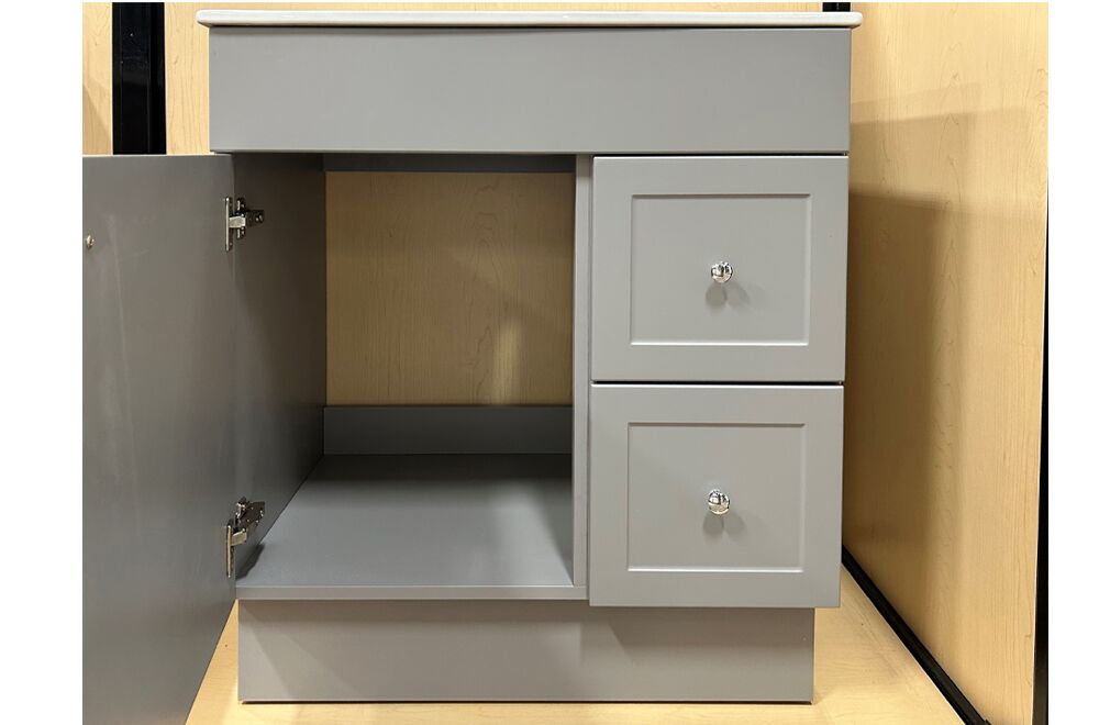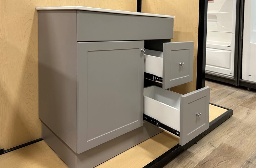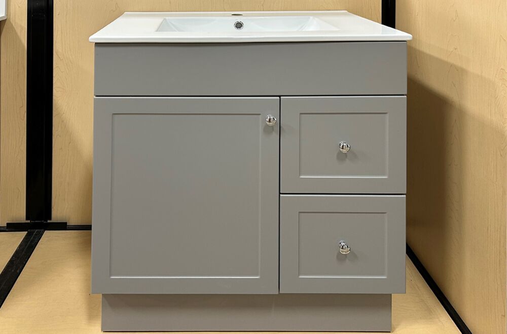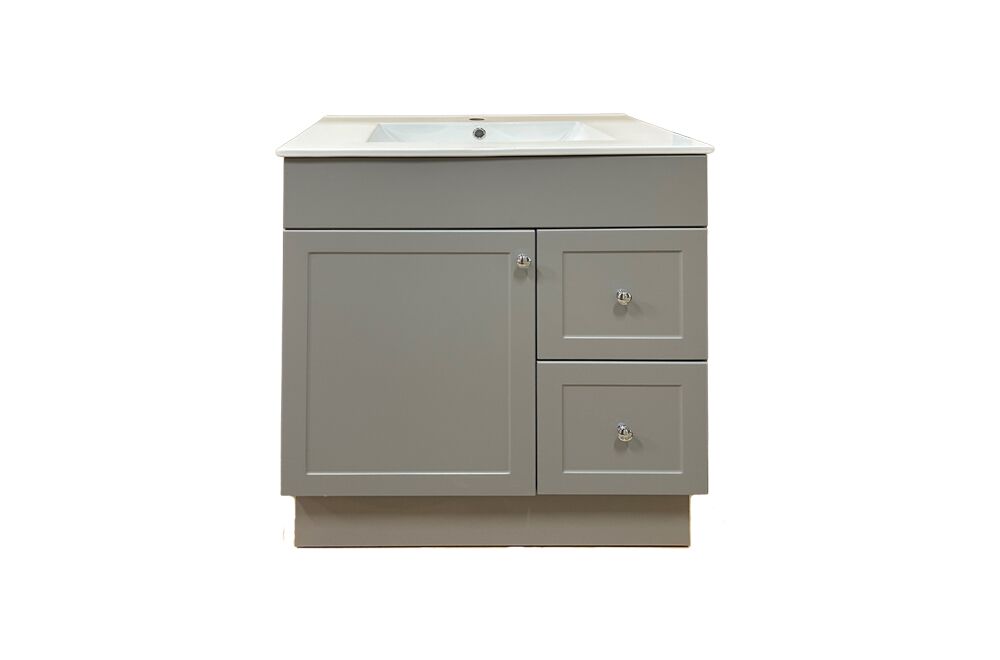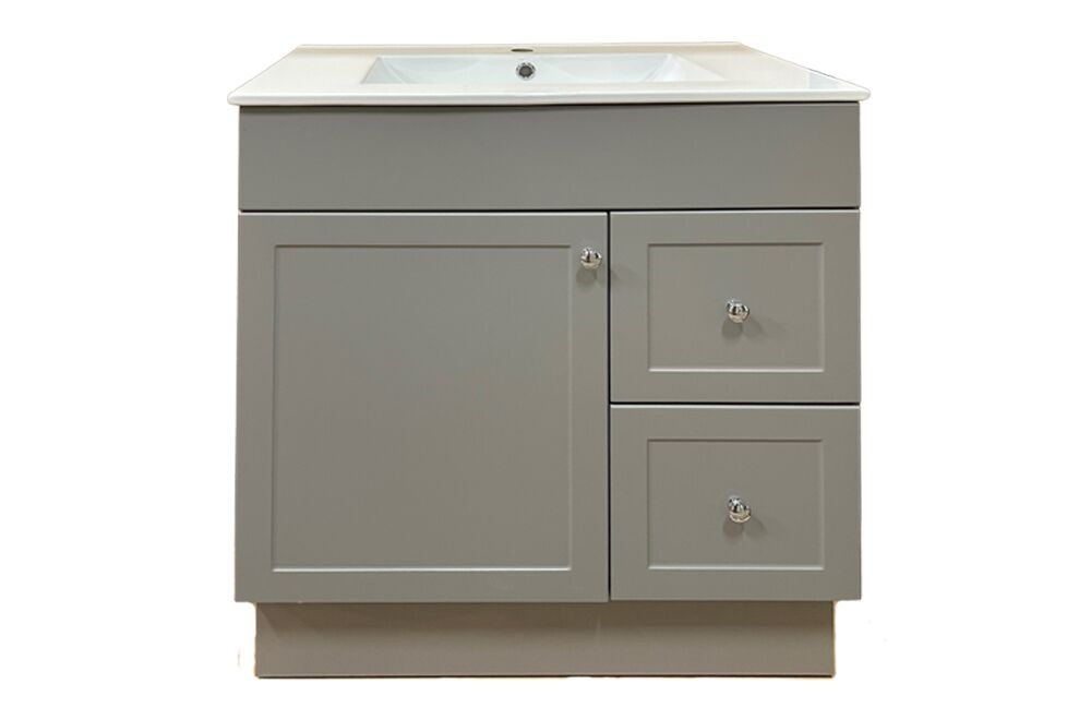 This classic vanity fits any style or budget. With a classic shaker style, this vanity features a single cupboard and 2 side drawers for convenient storage.