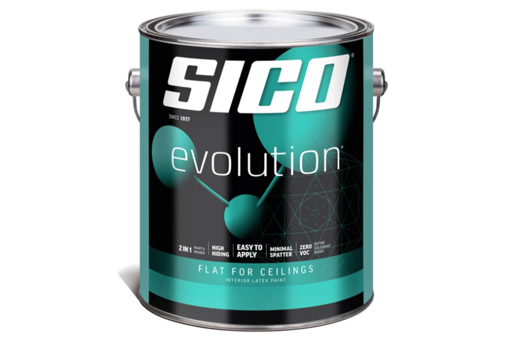 EVOLUTION® flat finish is a paint and primer in one for ceilings. It combines what’s most important in a primer and premium quality paints, for a durable finish in less time. Although this paint is washable, on ceilings requiring frequent washing, a glossier finish is preferable.