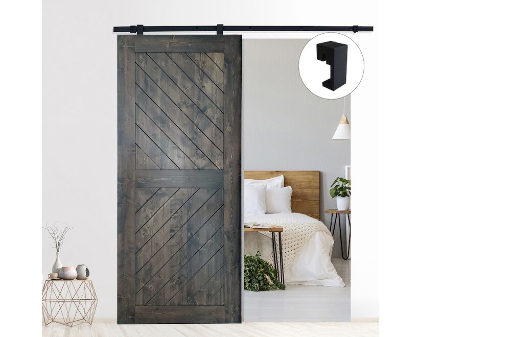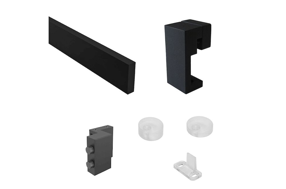 This modern-design square sliding door hardware holds a door up to 150lbs.