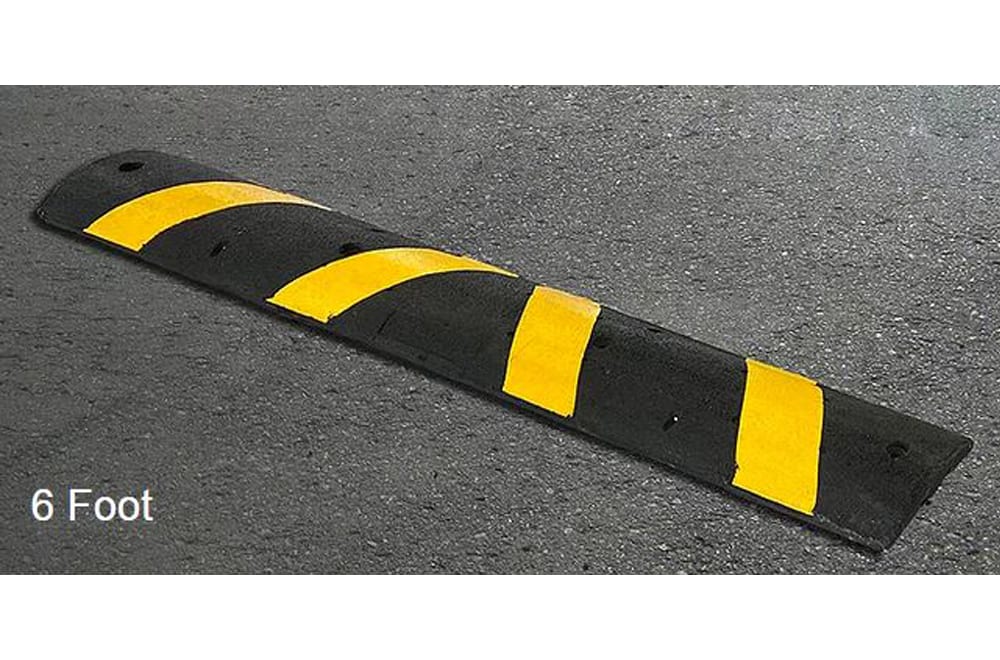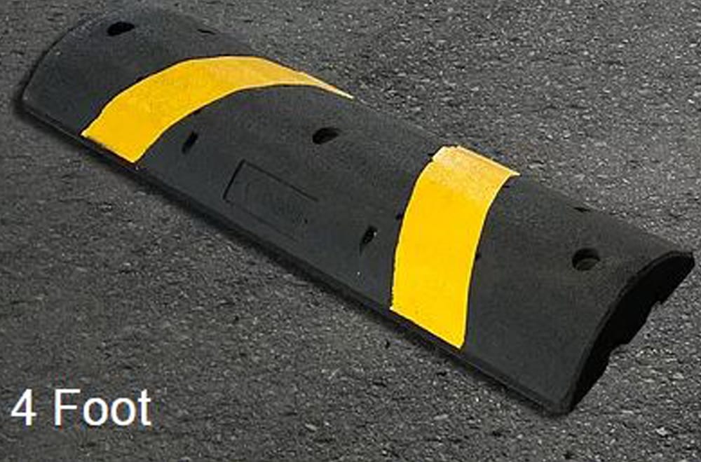 - 6' speed bump has 4 reflective strips and 6 cat eyes for maximum visibility (72" L x 12" W x 2.5" H; Weight: 43 lbs); 4' speed bump has 2 reflective strips and 4 cat eyes (48" L x 12" W x 2.5" H; Weight: 30 lbs)