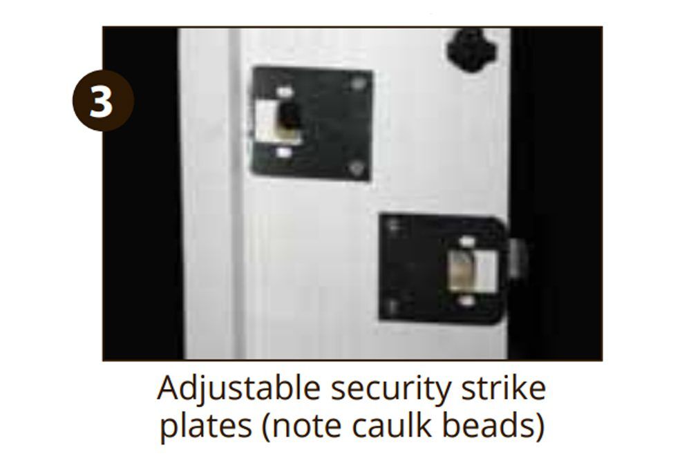 - Wrap-around Security Strike Plate: Effective break-in deterrent adds integrity to the entire door system assembly.