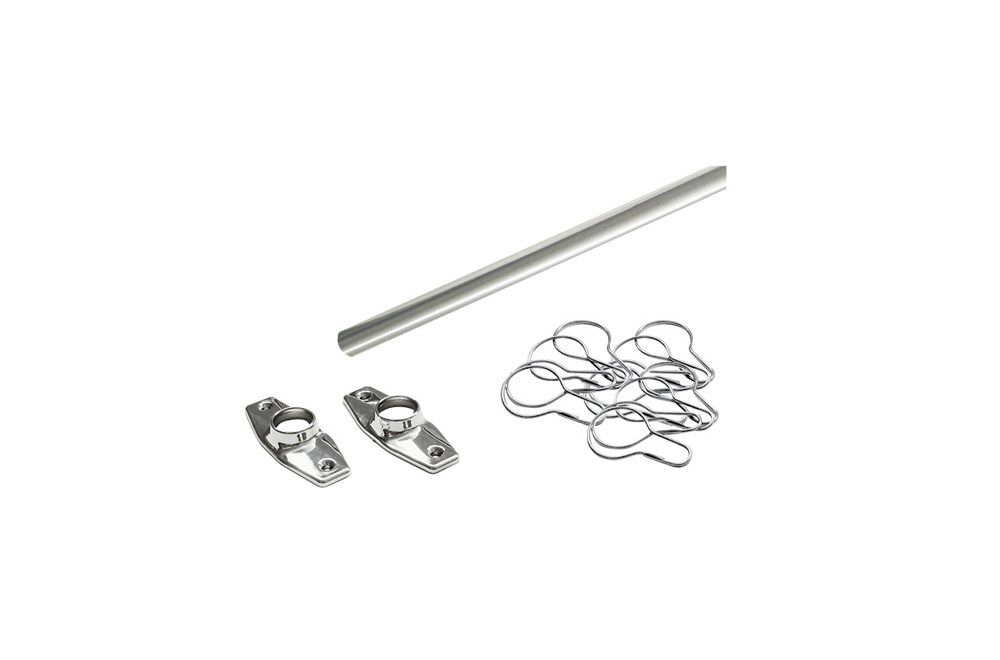 5′ Shower rod with shower hooks.
