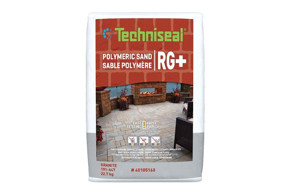 Issued from the latest generation of polymers, Techniseal® RG+ becomes water resistant quickly after activation. Designed to make joint stabilization easier than ever, RG+ Polymeric Jointing Sand is a high-tech mix of graded sand (ASTM C-144) and binder, specially formulated for the filling of narrow or wide joints when installing pavers, slabs or natural stones, or when replacing existing joints. It is ideal for surfaces exposed to light vehicular traffic, such as small commercial parking lots, driveways, terraces, backyards, garden paths, access roads, etc. Easy to use, RG+ is applied dry; it starts to set a few minutes after wetting, quickly becoming resistant to erosion due to water (rain, splashes, sprinklers, etc.). Once dry and