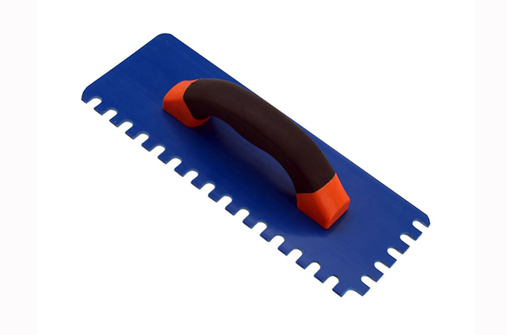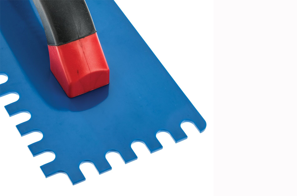 The CableTrowel blade is made of durable ABS plastic so it’s safer to use around heating elements. Its 3/8 in wide by 1/2 in deep, U-shaped, notched CableTrowel is light weight, but tough enough for commercial use, and suitable for larger tiles.