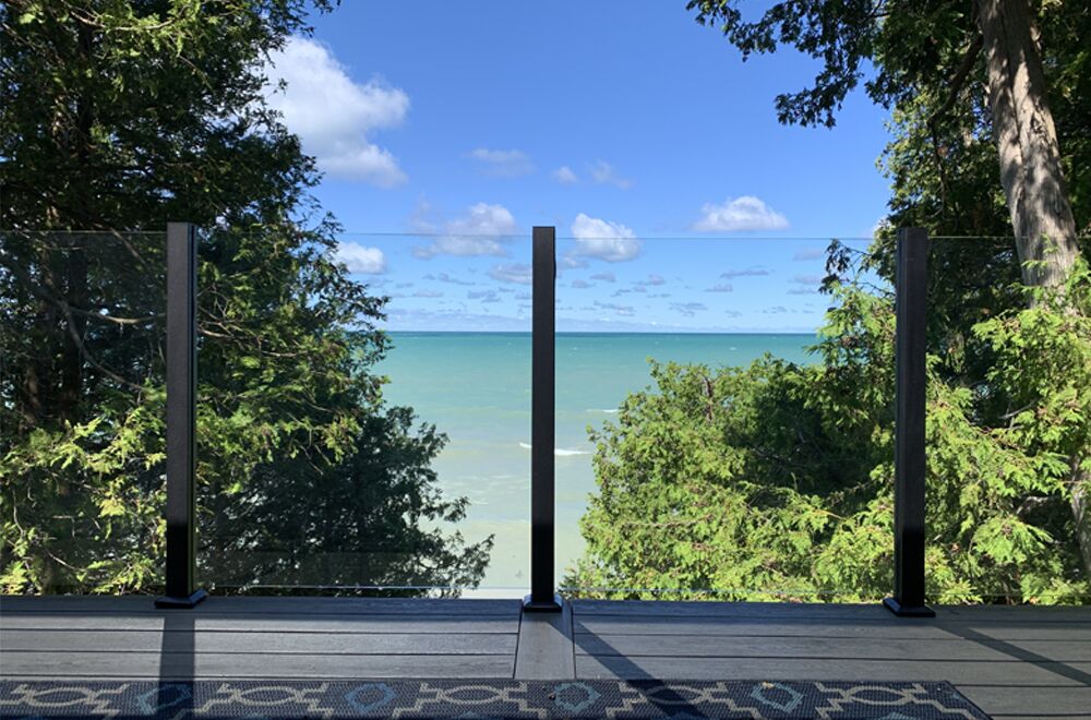 Vista’s frameless glass railing maximizes your view – there’s no top or bottom rail to obstruct your vista! Fully pre-assembled posts feature vertical slot with glass gasketing.
